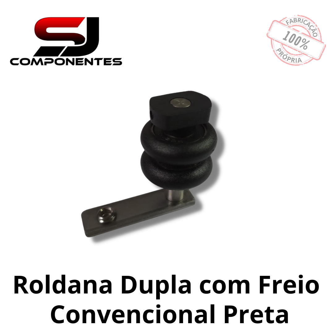 ROLDANA DUPLA COM FREIO PRETA CONVÊNCIONAL