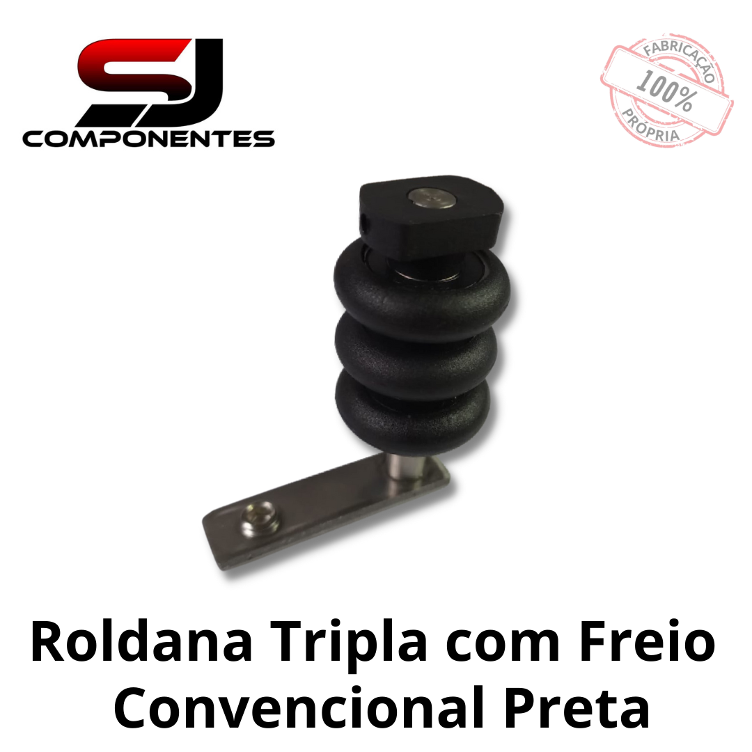 ROLDANA TRIPLA COM FREIO PRETA CONVÊNCIONAL